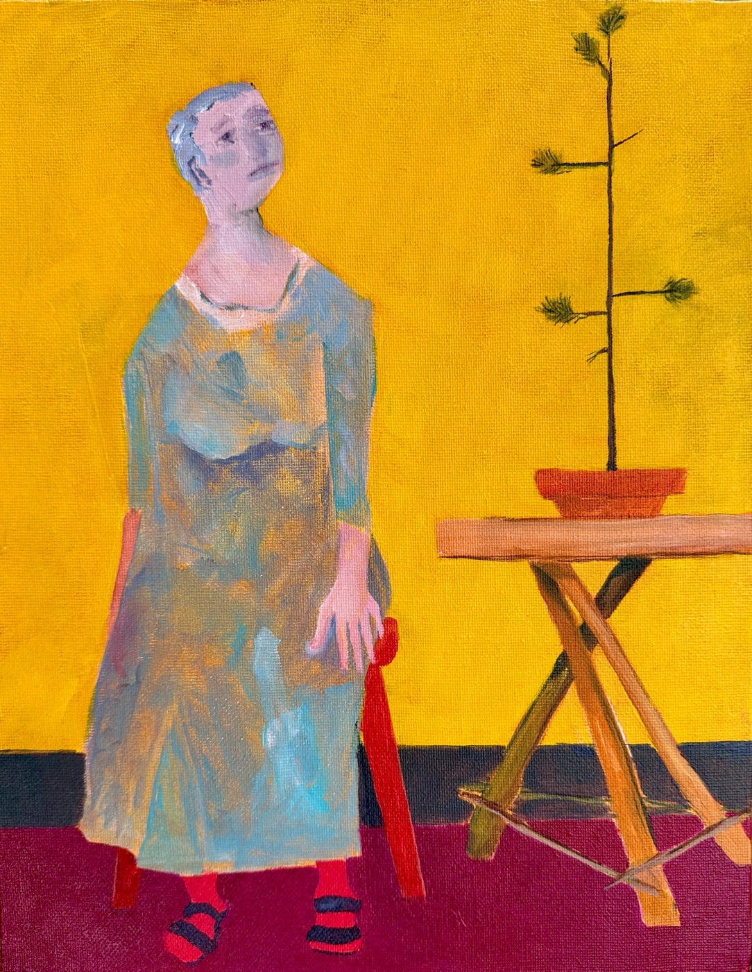 My paintings grow out of close looking—returning again and again to ordinary moments to investigate the life within them, and to make something interior visible. I’m drawn to figures at rest, tables set with familiar objects, and rooms or gardens where little appears to be happening. These are not dramatic scenes, but they are emotionally active ones. The work becomes a practice of attention: noticing how color, posture, surface, and proximity carry meaning.